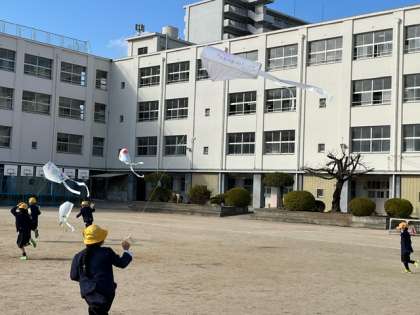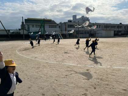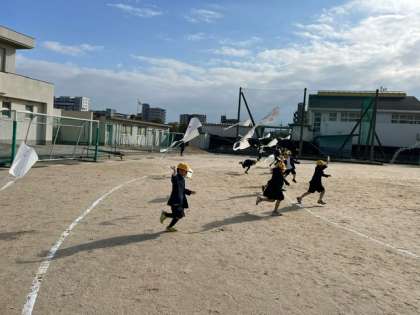 冬晴れの空の下、子どもたちがマイ凧を持って、駆け巡りました!