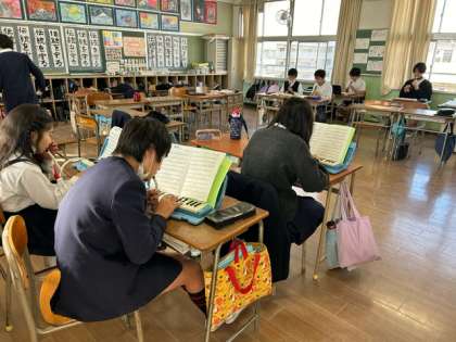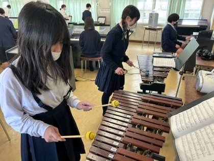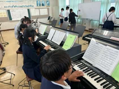 子どもたちが合奏に取り組んでいました。それぞれの楽器に分かれて、自主練習に入っていました。