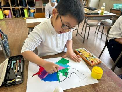 絵本「ぞうのエルマー」から、子どもたち一人一人が描く、自分だけのぞうができあがりました。