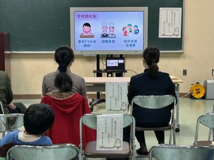 来年長原小学校に仲間入りする子どもたちの保護者のみなさんとともに、入学に向けての説明会が行われました!