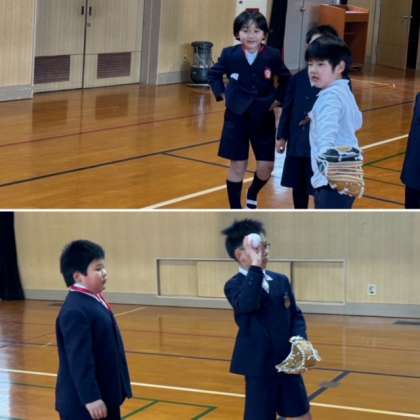 早速、昨日の休み時間に低学年の子どもたちが体育館で野球を楽しんでいました!