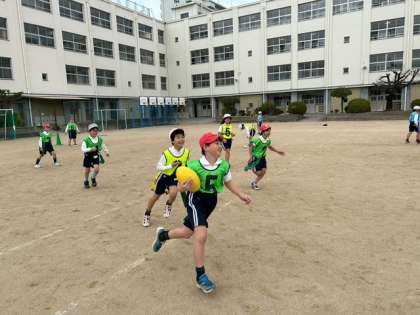 寒空の下を子どもたちが運動場を駆け巡ります。