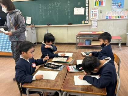 子どもたちは、ひらがな、漢字、書き方、伝え方を丁寧に考えながら書き出しています!