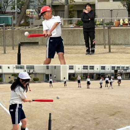 初めてバッドを握る子どももいて、ドキドキしながらの学びでした。