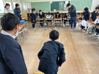 のぞくとボッチャにチャレンジしていました。以前に地域のみなさんと楽しんだゲームです。