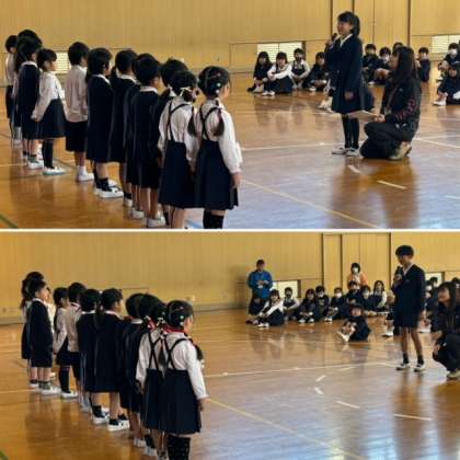 在校生の子どもたちも始まる前から体育館内にウェルカムの空気をつくりあげ、式中も代表児童はもちろんのこと、一人ひとりが出会の式をつくりあげました。2年生からのプレゼントも素敵でしたよ。