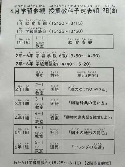 ?令和6年4月18日(木)学習参観・懇談会
