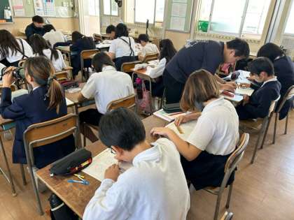 教室に学びに向かう子どもたちの空気が漂っています!いい感じです!大人が3人、子どもの支援に入ります。練習問題にまずは1人の世界で向かいます!困った時は、友だちや先生とともに学びます。