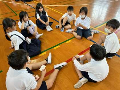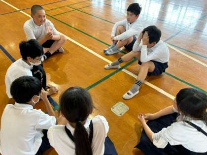 縦割りのグループに分かれて、「サークル対話」にチャレンジしました。