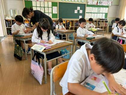 一文字一文字を丁寧に書く子どもたち!いざ集中すると、みんなの心がひとつになって、教室に学びの空気感が広がっています!