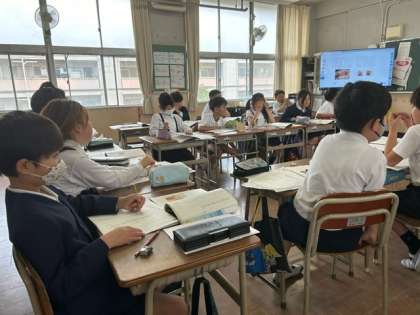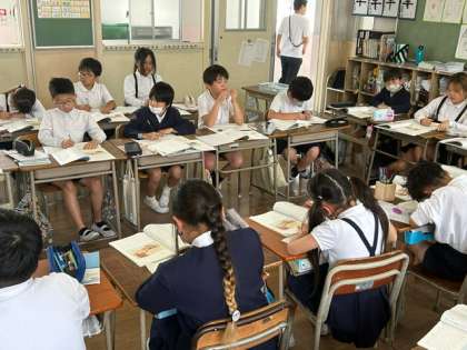 先生の話をしっかりと聞きながら、自分から教科書とにらめっこしています。国語の答えは本文にほとんどが集約されています。何をヒントに、どこに目をつければいいのか?学びのコツをつかむ子どもたちです。