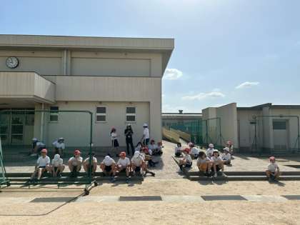 50m走を走り終えたあとの満足感たっぷりで、いい顔をしている子どもたち!その後は、体育館と運動場に分かれての活動です。