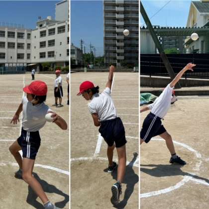 ソフトボール投げでは見事なフォームで投げる姿に、さすが高学年!と感動しました!