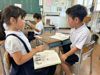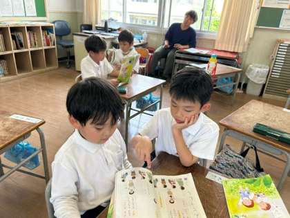子どもたちは自分が見つけてきたことを、カードに絵で仕上げて、言葉にして伝え合います。