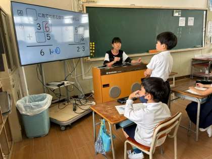 2桁の筆算で穴あき問題にチャレンジする子どもたちです。これなかなか難しい問題です。