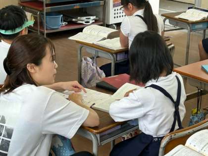 「先生とマンツーマンで学ぶ子ども」