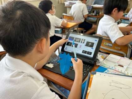 タブレットからの情報も駆使して、作品づくりに活かす子どもたち!タブレット操作も慣れたものです!