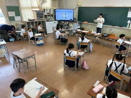 問題がどこにあって、なにを聞いていて、どう答えればいいのか、すべてが初めてのこと。丁寧に子どもたちへの指導をしています。子どもたちは、答えはもちろん、その答え方についても学んでいます。