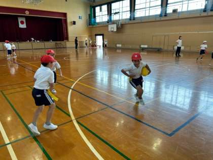 子どもたちは腰にタグをつけて、タグラグビーを楽しんでいます!