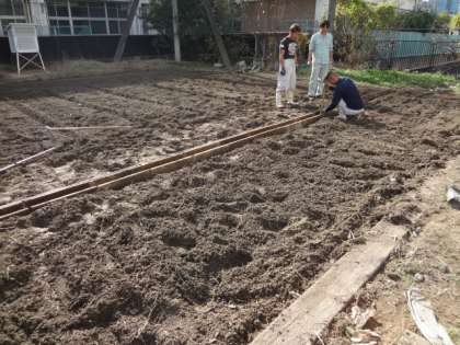 まずは花壇作りから始めました。一日かけて作業をし、見違えるほどきれいな花壇が出来上がりました。田んぼも新しく作り替えました。