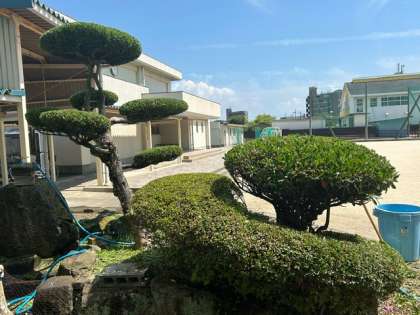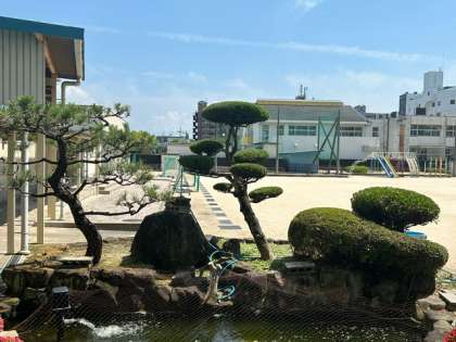 本校自慢の植木と池!池には数匹の鯉たちが優雅に泳いでいます。