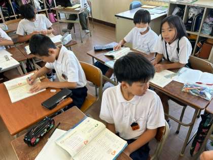 それぞれの言葉の意味を予想したり、辞書で調べたり、意欲的な子どもたちです!