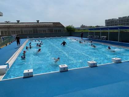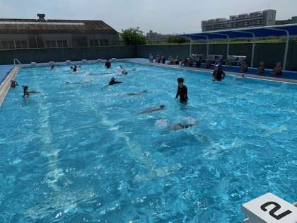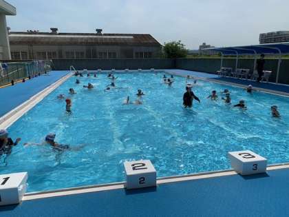 水慣れから始まった学習!水泳は命の危険を伴う学びです。ルールをしっかりと守って、子どもたちの安全に留意して、子どもたちとともに学びを楽しみたいです。
