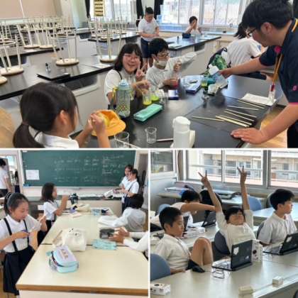 運動外!運動内!科学!家庭!パソコン!と校内にいきいきする子どもたちの姿が広がっています。