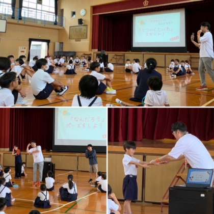 梅雨晴れの中、体育館では「ペントミノパズル表彰式」からスタート!このところ、毎週達成者が現れます!継続は力なりですね!
