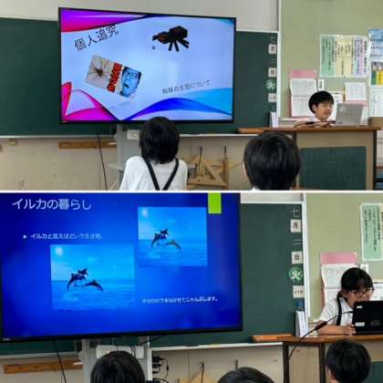 子どもたちは自分が追究したいことを「個人研究」として調べて、まとめて、発表しています。