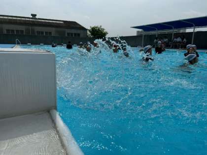 安心・安全に水泳学習になるように、様々な立場の大人が子どもたちに関わります。