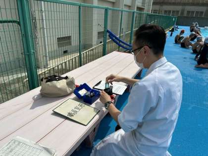 また、今日は薬剤師さんが来校されて、プールの水質検査を行っていただきました。