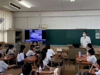 学校薬剤師の方に来ていただき、薬の正しい使い方の学習をしました。