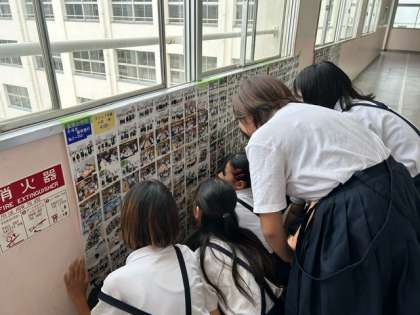 6年生の教室前には修学旅行の思い出写真が並んでいます。