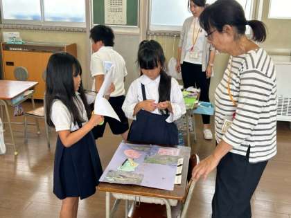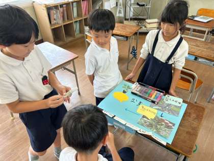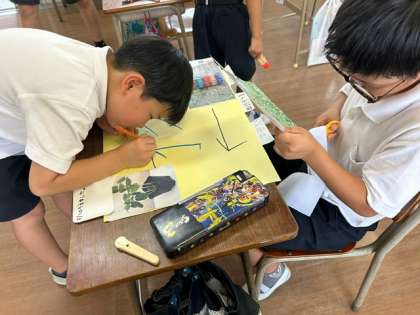 子どもたちは、大切に育てている野菜たちの観察記録をまとめています。