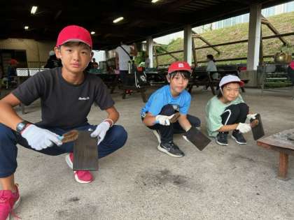 夕方から雨です!でも大丈夫!雨をしのぎながらの「焼き板づくり」のスタートです。