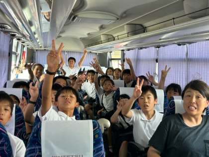 最初の休憩地、まほろばに到着しました。順調に走っています。子どもたちは元気です!