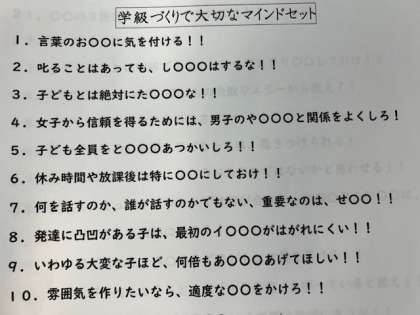 先日行われた大人の研修「学級経営」で、本校の教員のふりかえりをお伝えしたいと思います。