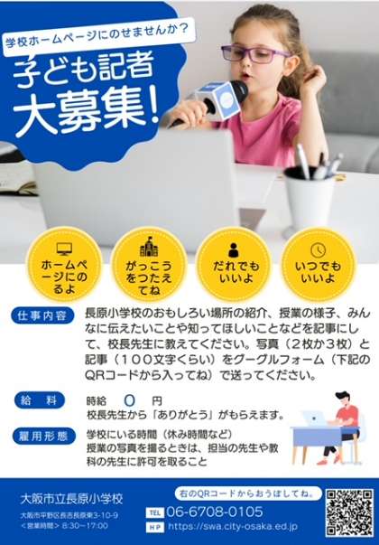 これまで学校ホームページは私が綴って来ました。子どもたちにも学校を自分の言葉で伝える機会をつくります!それが「子ども記者大募集!」です。