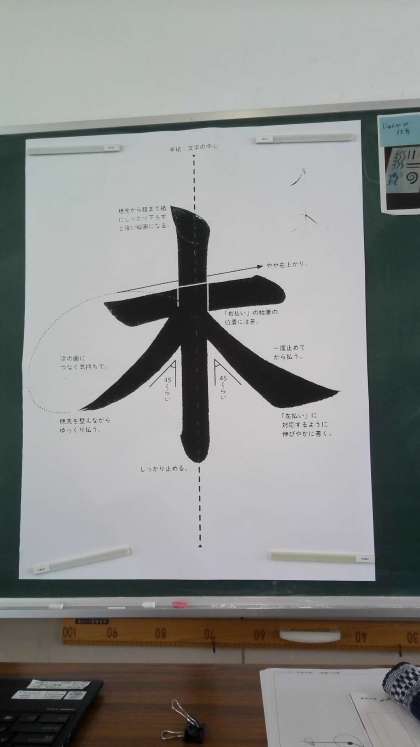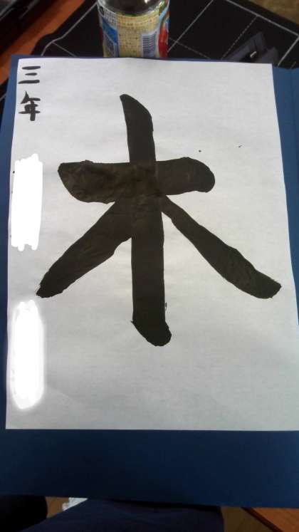 『今日は、習字をしました。今日の字は、木という字を習いました。はらいが、二つあったからむずかしかったです。とめ、はらいが一番むずかしかったです。これから、もっとむずかしい漢字が出てくるので、がんばります!』