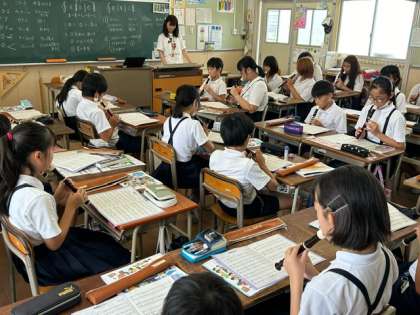 子どもたちが鑑賞からリコーダーの演奏へと、音楽の世界を楽しんでいます。なんだかとてもしっとりと落ち着いて学びに向かっているリーダーたち!