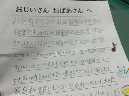 子どもたちからのお手紙も喜んでいただきましたよ。みんなありがとうね。
