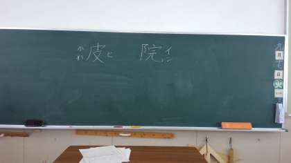 『今日国語で練習した漢字は「院」と「皮」です。二つともむずかしいけど先に塾で練習したので簡単でした。次に習う漢字が楽しみです。』