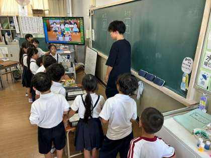 教室は「あたまおしりゲーム」で大盛り上がりです!