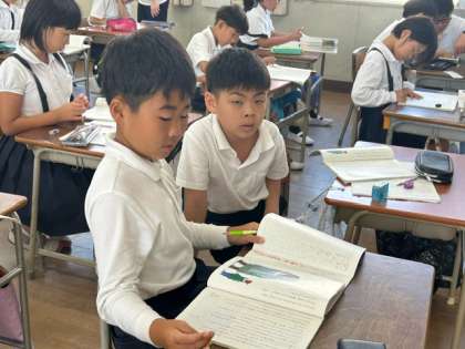 物語「サーカスのライオン」の学びです。子どもたちは、場面に分けて見出しをつけています。自分ができたらお友達と考えを共有します。友達の考えを聞きながら、自分の考えを深めていきます。みんなで学ぶ意味はここにあります!友達と楽しそうに学ぶ姿が印象的でした!
