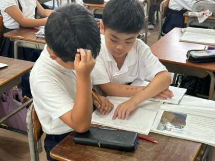 困っている子もなんとわかろうとする姿、友達と意見を交流しながらなんとかしようとする姿、先生に聞きながら見つけようとする姿や根拠となる文を示しながら伝える姿など、がんばる姿がよくわかりました。