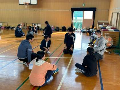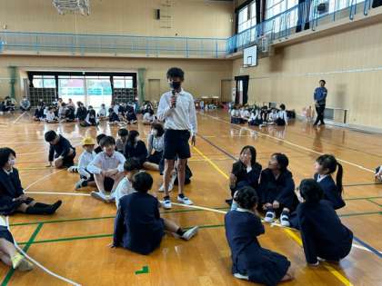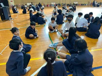 お昼休みと掃除時間のあと、子どもたちは帰る用意をして、体育館に集合です!