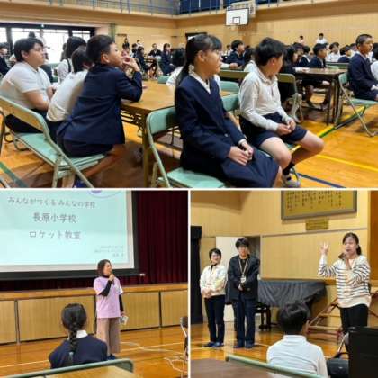 快晴の空の下ではなく、まずは体育館に全員集合!子どもたち!教職員!PTA!などの大人たち!みんなが集まって、ロケット教室のスタートです。