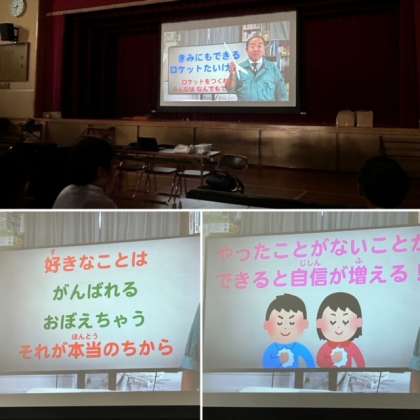 今回もはじめに、ロケット発案者である植松電機社長、植松努さんからのビデオメッセージをみんなで鑑賞しました。