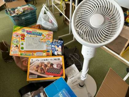 フリーマーケットにはみなさまからの賞品提供に感謝しています。続々と届いています。